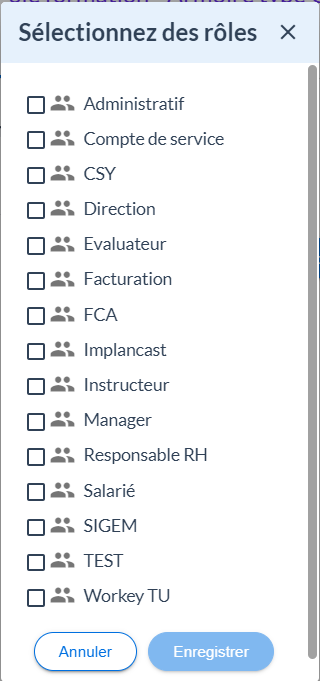 Il suffit de cocher les rôles qu’on souhaite associer à l’armoire, puis de cliquer sur le bouton