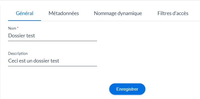 | Filtre d’accès | Cette option est utilisée pour éventuellement limiter l’accès de certains utilisateurs aux dossiers créés à partir de ce gabarit de dossier. Pour plus de détails sur cette fonctionnalité, se reporter à la section dédiée de de ce manuel. |