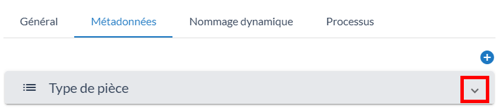 Il est alors possible de modifier le paramétrage de la métadonnée en cliquant sur la petite flèche