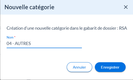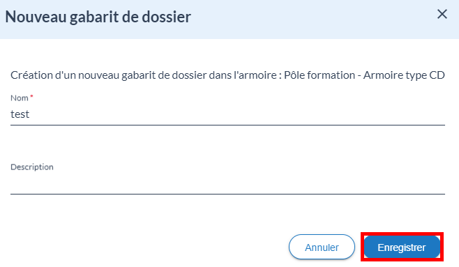 Saisir le nom et la description (optionnelle) du nouveau gabarit de dossier puis cliquer sur le bouton