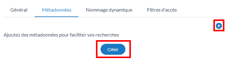 Pour ajouter une première métadonnée, cliquer sur le bouton