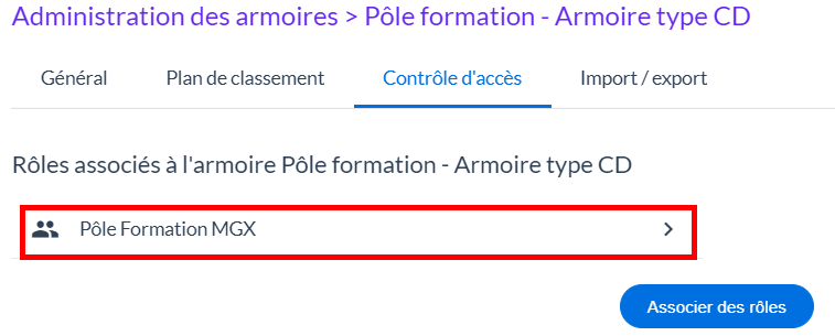 Cette association peut être réalisée depuis l’onglet « Contrôle d’accès », via le bouton