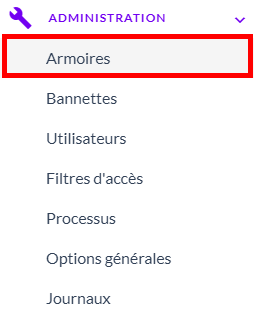 L’administration des armoires s’effectue dans l’item « Armoires » du Menu Administration.