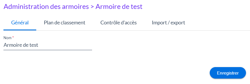 L’onglet « Général » est excessivement simple puisqu’il permet uniquement de modifier le nom de l’armoire visible par les utilisateurs dans l’application.