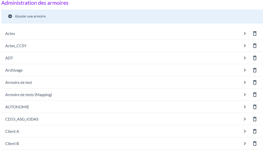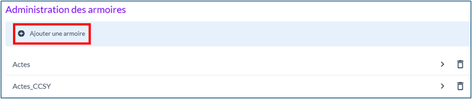 La nouvelle armoire est créée. On peut accéder à la suite de son paramétrage en cliquant sur son nom dans la liste des armoires :
