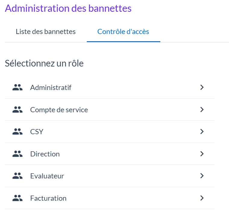 Cliquer sur le rôle pour lequel on souhaite définir les habilitations sur les bannettes de Efalia Doc.