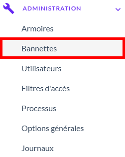 L’administration des bannettes s’effectue dans l’item « Bannettes » du Menu Administration.
