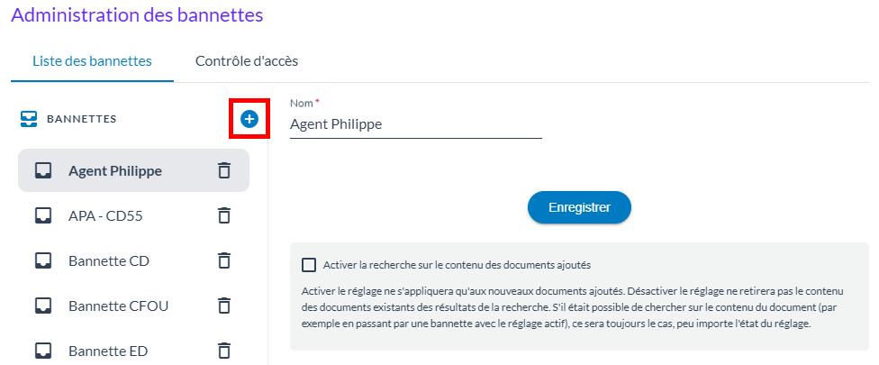 Dans l’onglet « Liste des bannettes », cliquer sur le bouton d’ajout