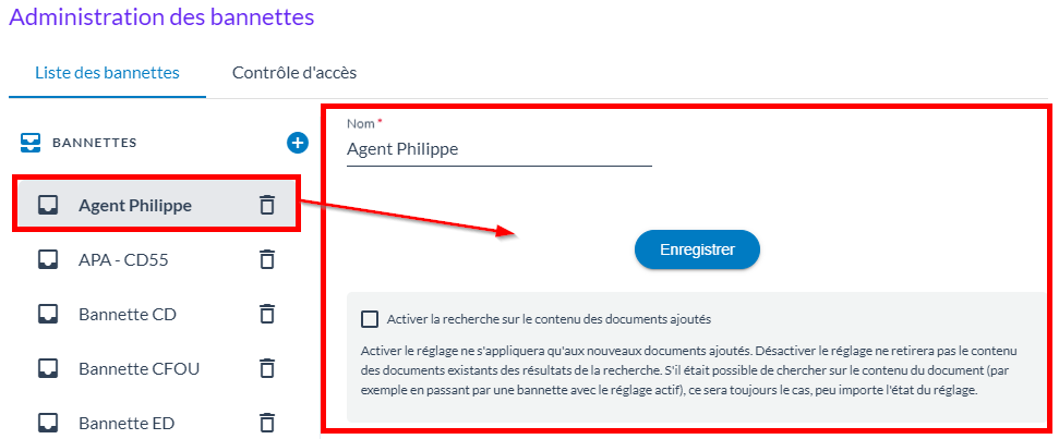 Dans l’onglet « Liste des bannettes », cliquer sur le bouton