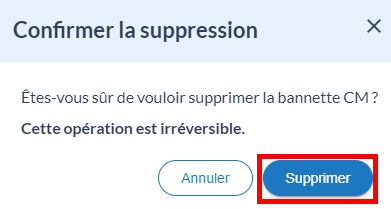 Une fenêtre de confirmation est affichée pour éviter une suppression causée par une erreur de clic :