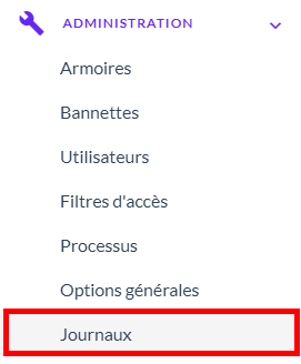 L’accès aux journaux s’effectue via l’item « Journaux » du Menu Administration