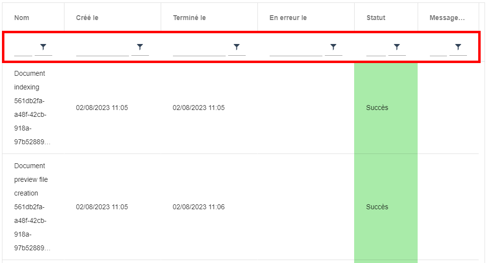 • En erreur le : date de l’éventuelle erreur rencontrée lors de l’exécution de la tâche