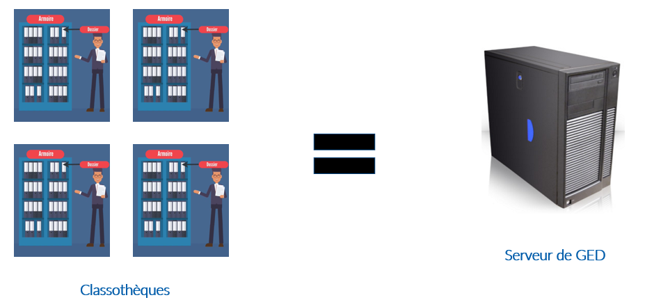 Il s’agit en quelque sorte d’un « gros ordinateur » qui possède un volume de stockage important. Tous les dossiers et documents de la GED sont centralisés sur ce serveur.
