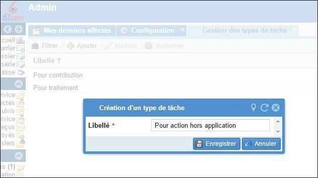 L’administrateur peut accéder à l’interface de gestion des types de tâches pour créer de nouveaux types, modifier ou supprimer les existants. Les types de tâches vont permettre de faire des recherches par type.