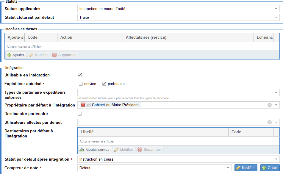 ▪ Propriétaire par défaut à l’intégration : permet d’identifier le service propriétaire par défaut