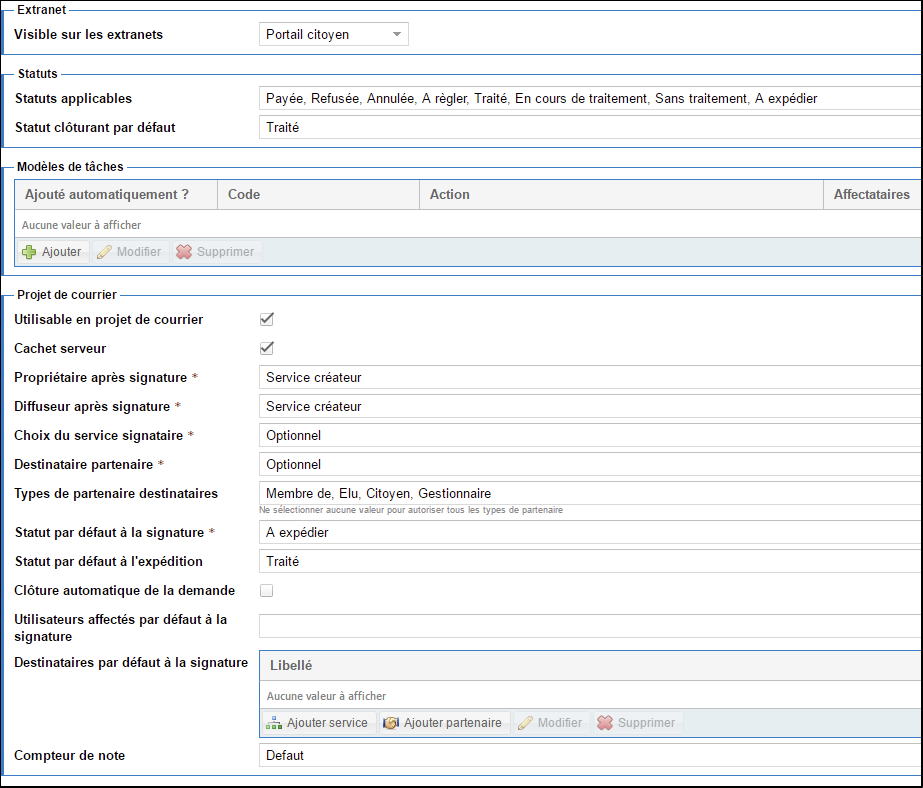 Attention : pour qu’un dossier soit visible sur le portail, il faut que la nature de ce dossier soit listée dans les natures externes.