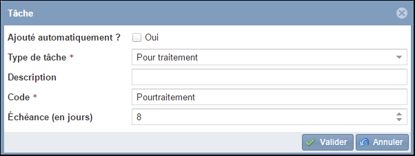 ▪ Délai de traitement par défaut (permet de calculer la date d’échéance sur la tâche)