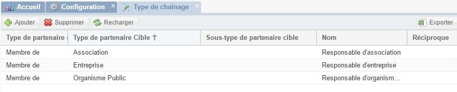 ▪ Réciproque : permet, pour 2 partenaires de même type, de définir une réciproque permettant de retrouver la donnée de chainage à la fois dans le partenaire source et dans le partenaire cible.
