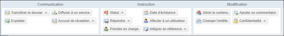 Exemple 2 : Si on cite le bouton « Transférer le dossier » dans le bloc « Communication », il faudra citer tous les autres boutons pour que ceux-ci apparaissent.