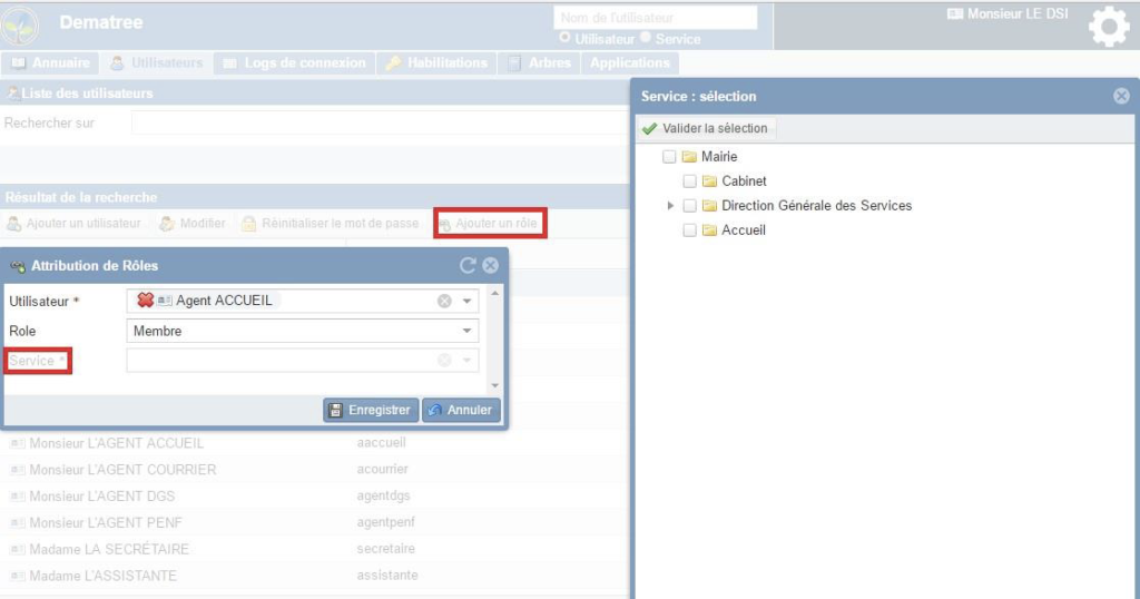 L’attribution de ces profils à un utilisateur lui ouvre des droits dans l’application Dematree.