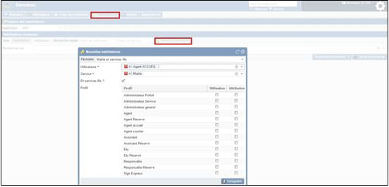 L’administrateur clique sur « nouvelles habilitations » en haut de l’écran. La fenêtre suivante s’ouvre :
