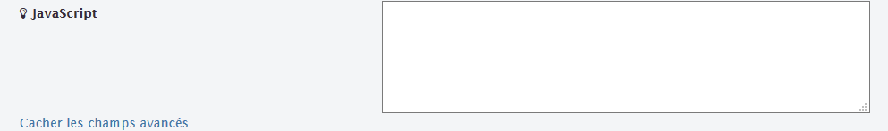 L’intégration de code JavaScript permet de contrôler l’affichage de champs de la démarche (masquer/afficher des champs ou rendre des valeurs de champs inaccessibles).