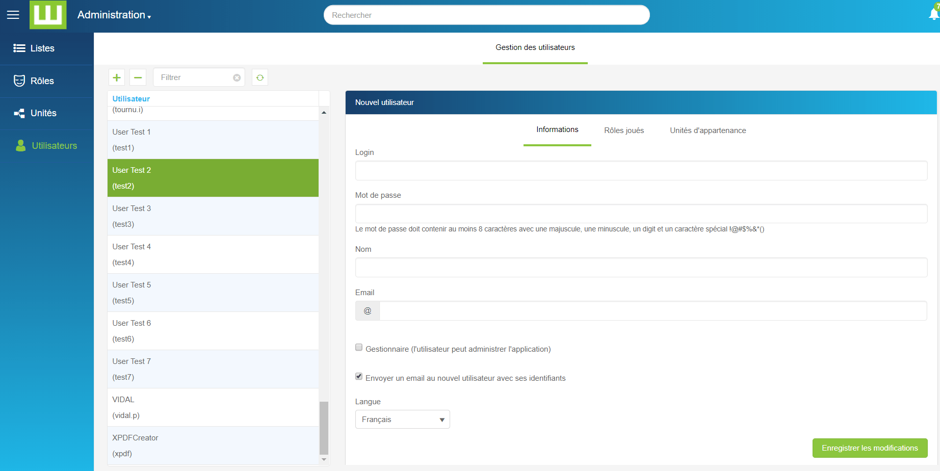 Pour affecter des utilisateurs, sélectionner l’unité et cliquer et ajouter les utilisateurs pour cette unité.