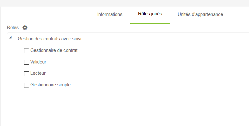 Si vous affectez l’utilisateur au rôle « Gestionnaire_Simple » cet utilisateur devra demander systématiquement une validation du contrat.