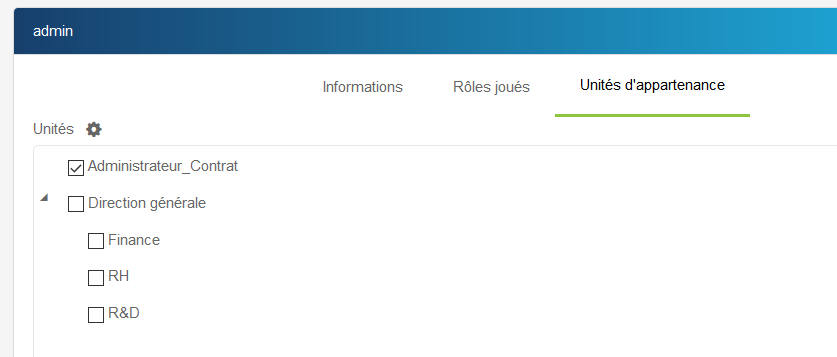 En revanche les utilisateurs de l’unité finance n’ont pas accès aux contrats de l’unité RH.