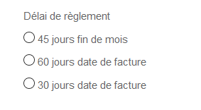 Cette table permet de définir les conditions de règlement dans la section « Durée du contrat et informations financières »