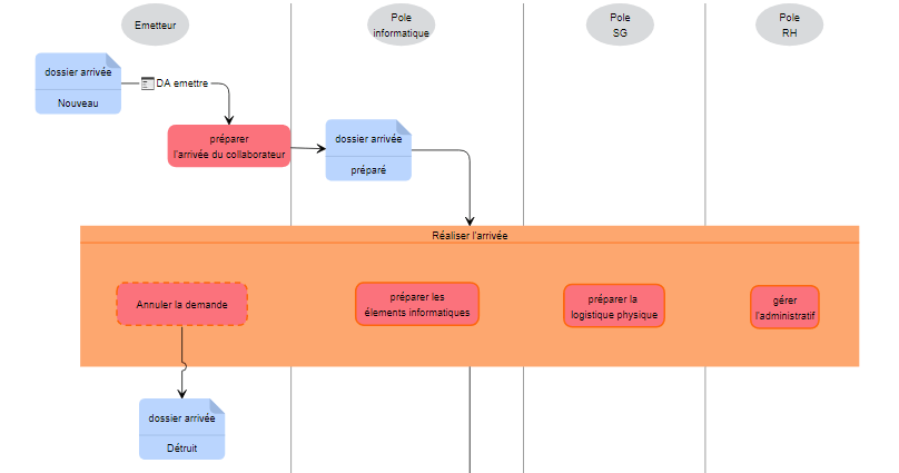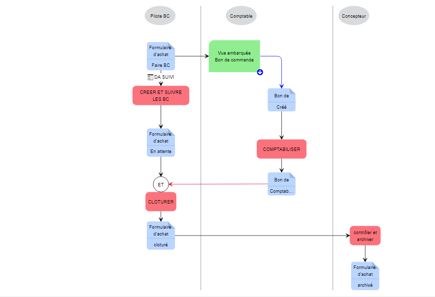 Un graphe de procédures permet de représenter la circulation de ressources ou des documents au sein de la procédure.