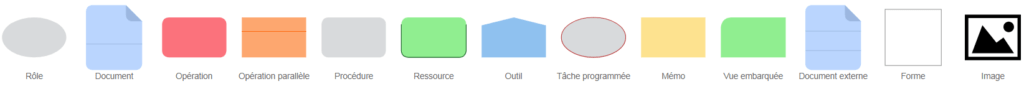 Les outils servent à décrire les modèles de procédures ou d’opérations. Ils représentent des flux d’information entrants ou sortants en relation avec des applications externes ou bien des outils bureautiques.