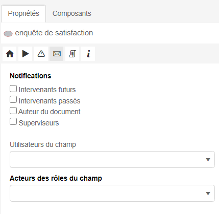 Utilisateurs du champ : un courriel d’information sera envoyé automatiquement aux acteurs étant renseignés un la valeur du champ spécifié. On notera que ce champ peut être multi-valué. Acteurs des rôles du champ : un courriel d’information sera envoyé automatiquement aux acteurs étant renseignés un la valeur du champ spécifié. On notera que ce champ peut être multi-valué.