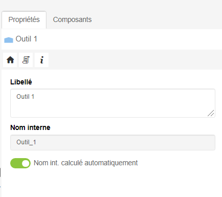 Libellé : Permet de saisir un nom visible pour le rôle Nom interne : Attribut Designer_name de l’objet (Ce nom doit être unique) Nom interne calculé automatiquement : Permet de garantir l’unicité des noms interne d’objets en laissant Workey les définir