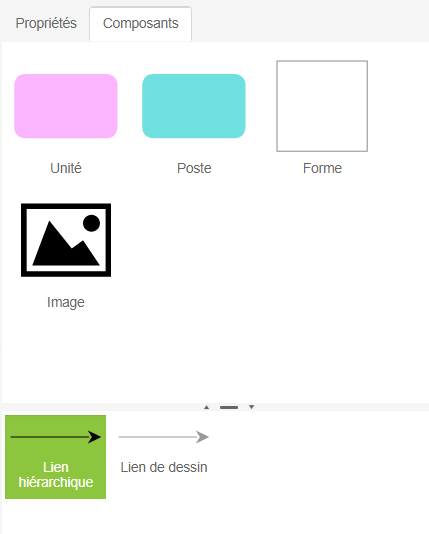 Glissez un composant Unité dans vôtre graphe, puis ajustez-en les propriétés.Glissez un composant Poste, puis ajustez-en les propriétés.Les sections Général, Description et Liens sont disponibles comme pour les autres types d’objets.