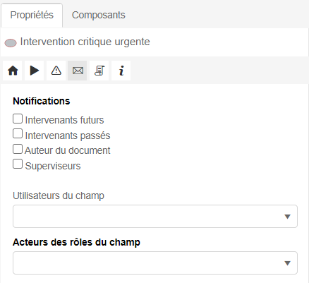 Dans le cas de notifications “aux acteurs des rôles”, celles-ci ne seront adressées qu’aux seuls acteurs (du ou des rôles désignés) étant intervenus sur le document (au regards de son historique). Si pour un rôle désigné, aucun des acteurs du rôle n’est intervenu sur le document concerné par l’évènement, alors ce sera l’ensemble des acteurs de ce rôle qui sera notifié.