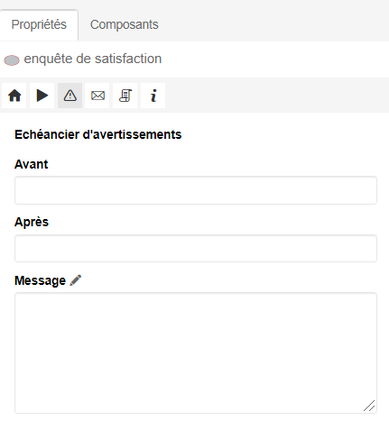 La gestion des délais à respecter dans un processus est confiée à un agent. Il est possible de spécifier que les notifications envoyées par cet agent aux acteurs donnent automatiquement lieu à des annotations reprenant les termes de ces notifications. Ceci aura pour effet de conserver ces messages et de les rendre visibles aux acteurs concernés. Dans l’outil de conception, il faut afficher la page du graphe du processus et éditer ses propriétés.