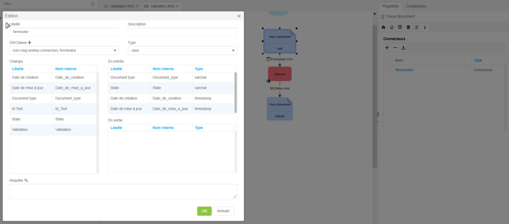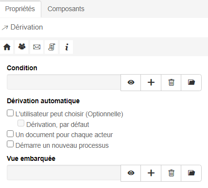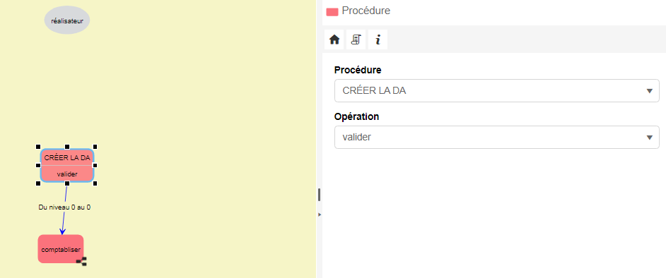 - une condition “ET” figure en dessous de l’opération: un ou plusieurs documents seront créés en résultat de l’opération, donnant lieu à autant de sous-processus (ou documents dérivés).