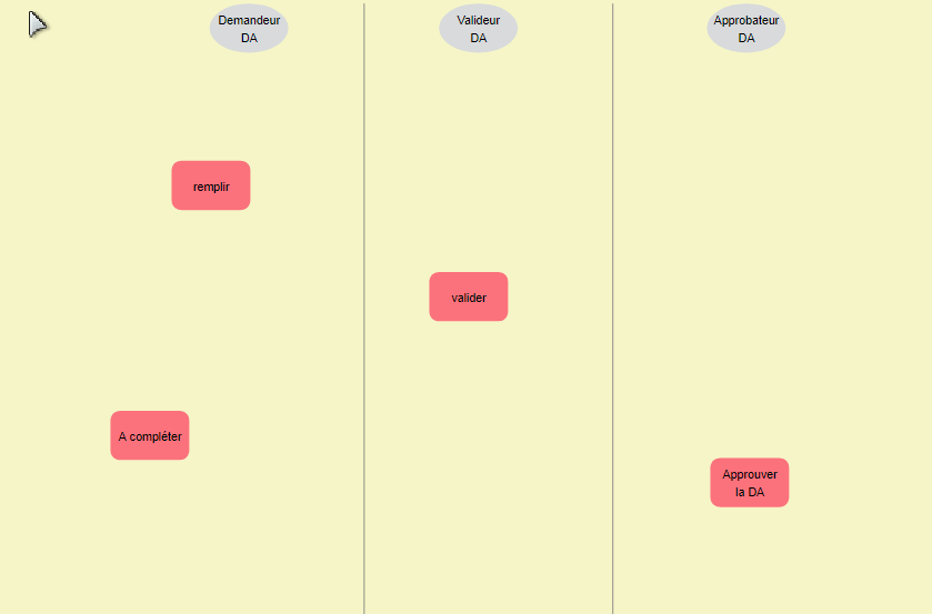 Pour ajouter une opération dans une opération parallèle, glisser déposer le composant “opération” dans le cadre de l’opération paralléle et pour la colonne du rôle en charge de l’opération.