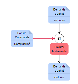 Le lien de sortie d’une opération vers un document dans un état donné peut être assorti d’une règle, spécifiant la condition nécessaire pour la sélection de cet état. La propriété