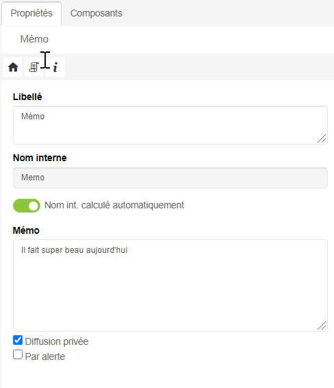 Description : Permet de saisir un texte de description, pointer vers un fichier externe contenant le texte de description et entrer un texte d’aide.