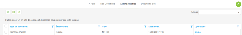 - Dans la vue “Actions possibles”, les utilisateurs jouant le rôle voulu peuvent visualiser tous les documents qu’ils sont en mesure d’annoter: