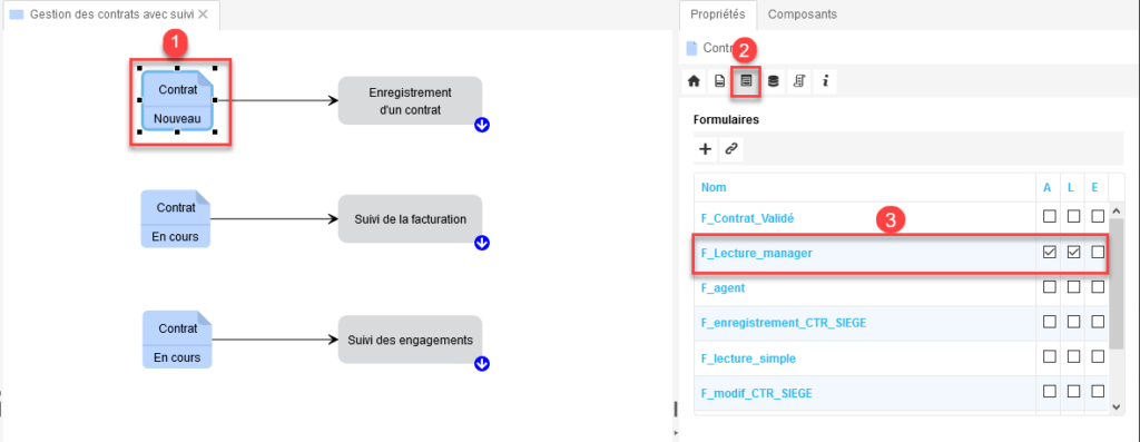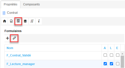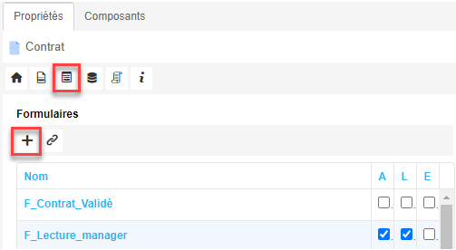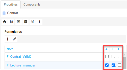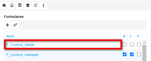 - Lecture par défaut (L) : Permet de définir le formulaire sélectionné comme celui qui sera présenté par défaut en lecture