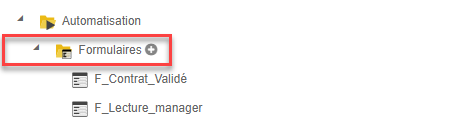 Il est possible également de cliquer sur la croix qui s’affiche à droite de la section Formulaires dans le panneau Projets pour créer un nouveau formulaire, puis l’associer au document souhaité.