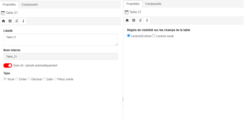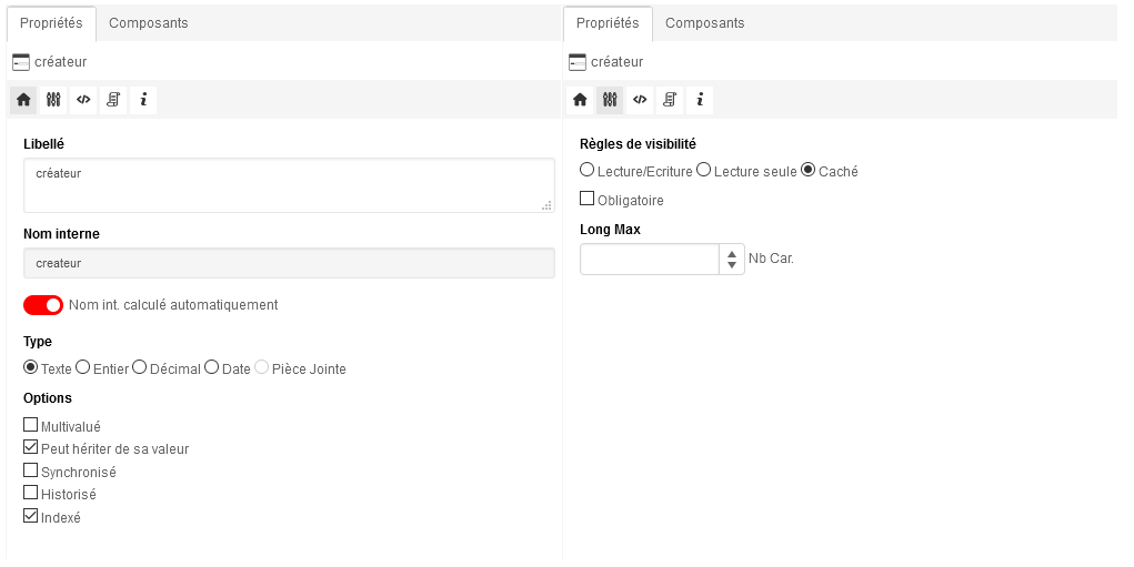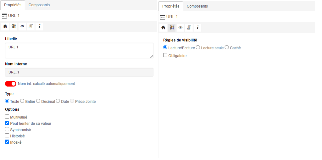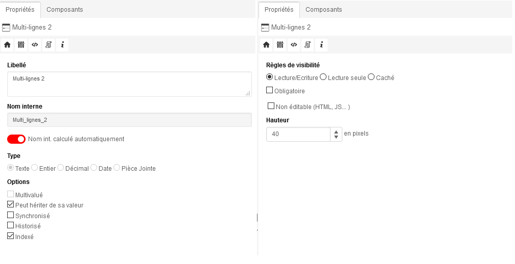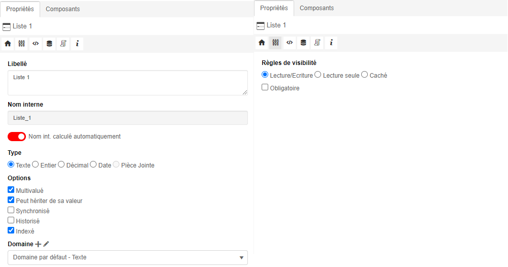 - règle de visibilité (lecture, caché, édition, obligatoire)