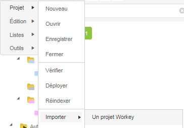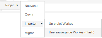 Il vous est également possible d’importer un projet Flash enregistré sur votre poste. Pour cela, accédez au menu “Projet > Importer > Un projet Workey“