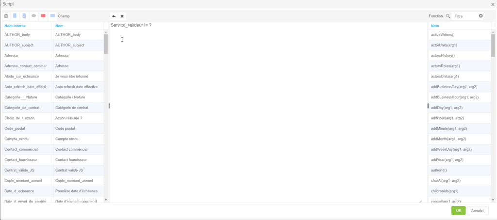 Pour pouvoir déployer votre processus sur le serveur de workflow, il est indispensable que vos règles soient syntaxiquement correctes par rapport au langage de formule Stalk.