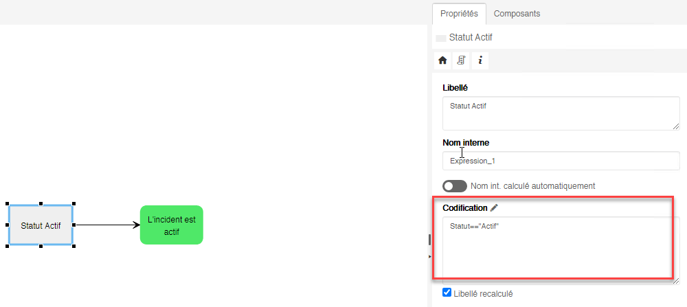 - préciser depuis la section “codification” le contenu de l’expression en cliquant sur l’icône :
