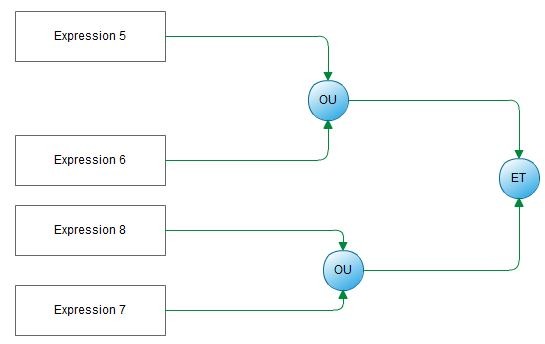 - ET : Défini une condition de type ET liant deux expressions ou plus qui devront toutes retourner vrai pour que la règle soit vérifiée.