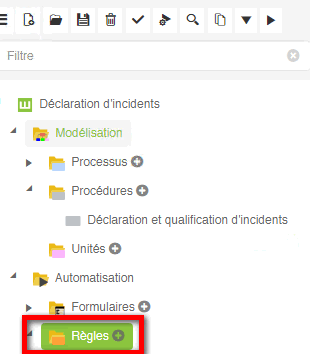 Cliquez sur le symbole (+) à) coté de l’item “Règles” dans le panneau des projets pour créer une nouvelle règle.